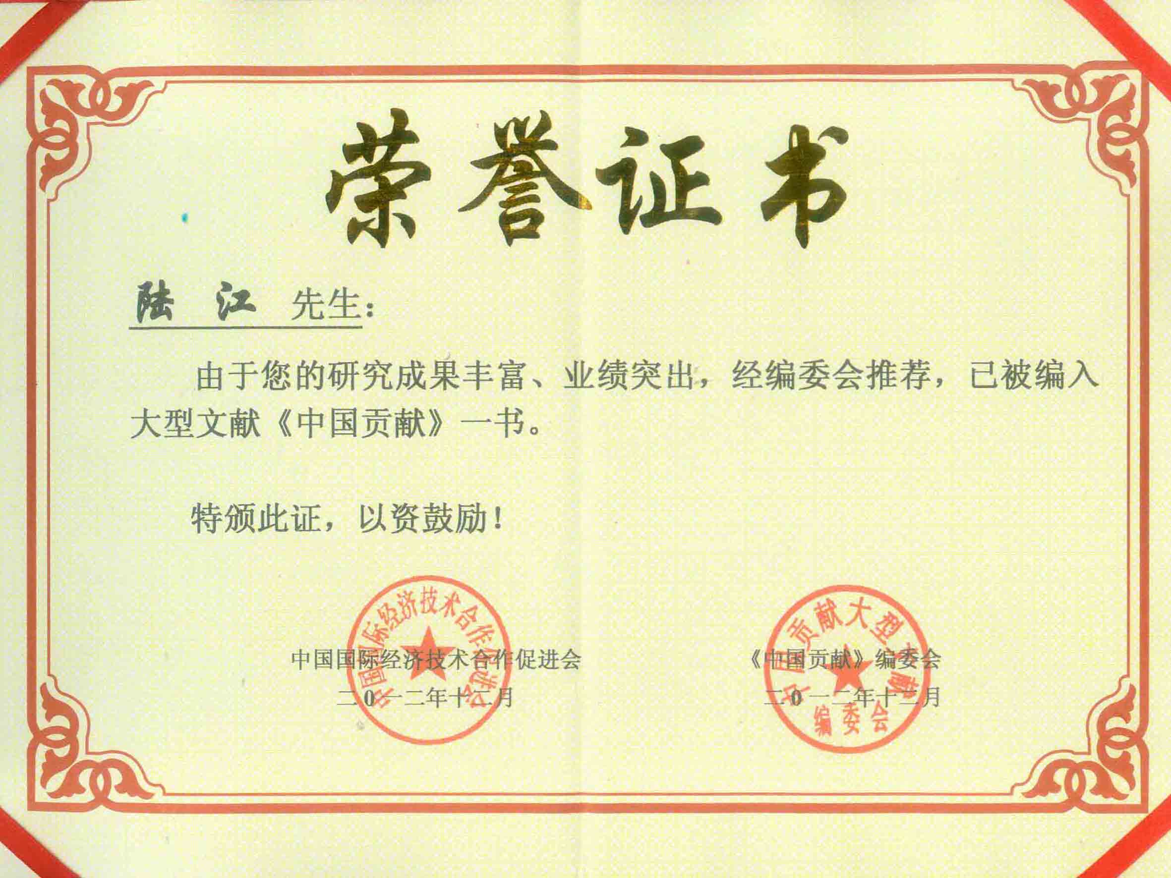 陸江榮獲引領行業(yè)發(fā)展杰出貢獻人物證書 --------卓康公司榮獲全國質量、服務、信譽AAA級品牌證書